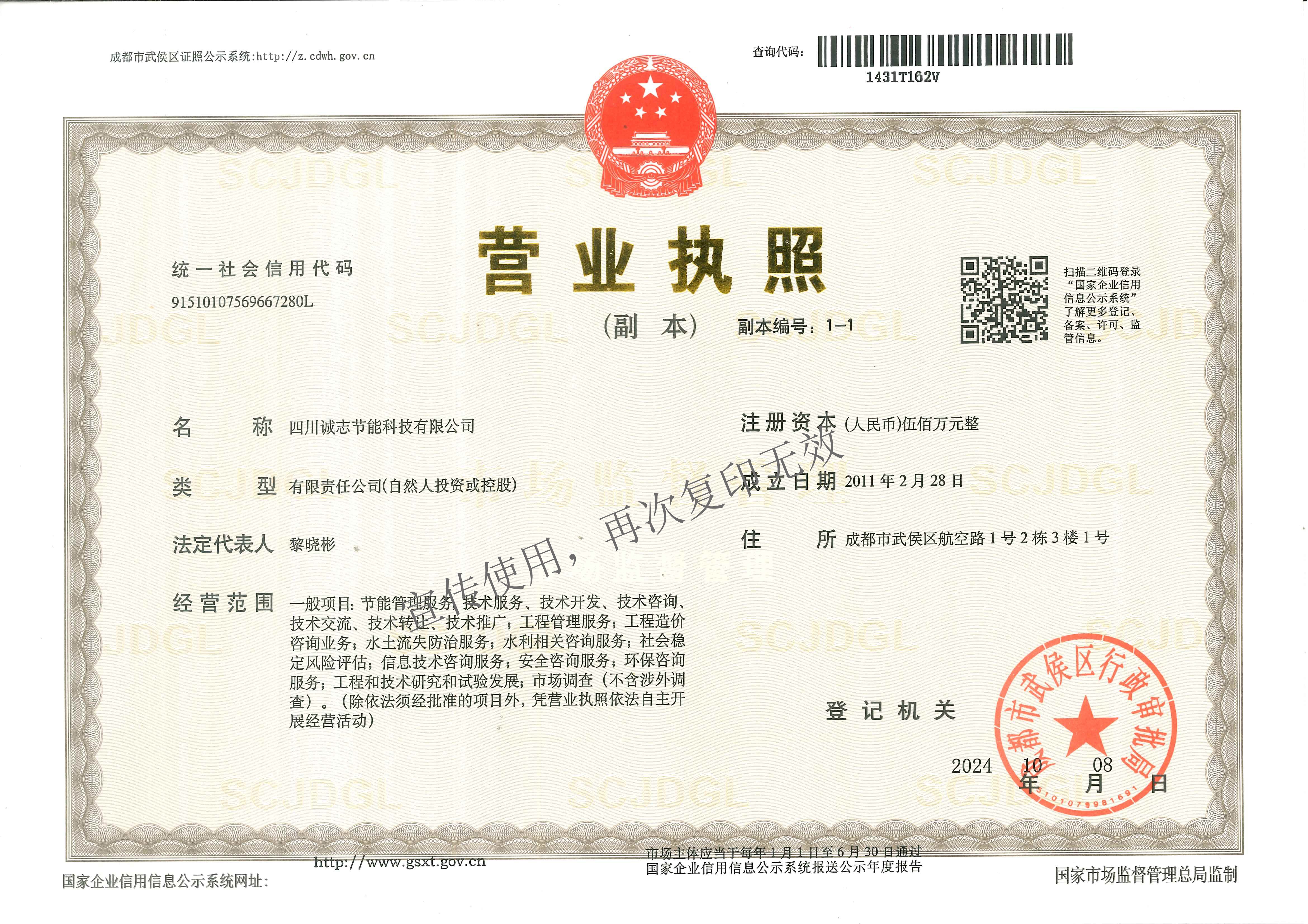 四川誠志節能科技有限公司(以下簡稱我公司)成立于2011年2月,是由多年從事技術咨詢服務行業的自然人發起,依托其近20年的咨詢行業經驗及其市場和人力資源優勢,組建成立的具備獨立法人資格的技術咨詢服務公司。我公司為四川省省級能源審計機構資格(2012年第一批,2016年四川省經信委推薦能源審計機構【川經信辦環資〔2016〕10號】),并取得含有節能專業的工程咨詢單位咨信資質,為四川省工程咨詢協會會員單位,中國水土保持學會會員單位,為高新技術企業。我公司通過了質量管理體系(ISO9001)、環境管...